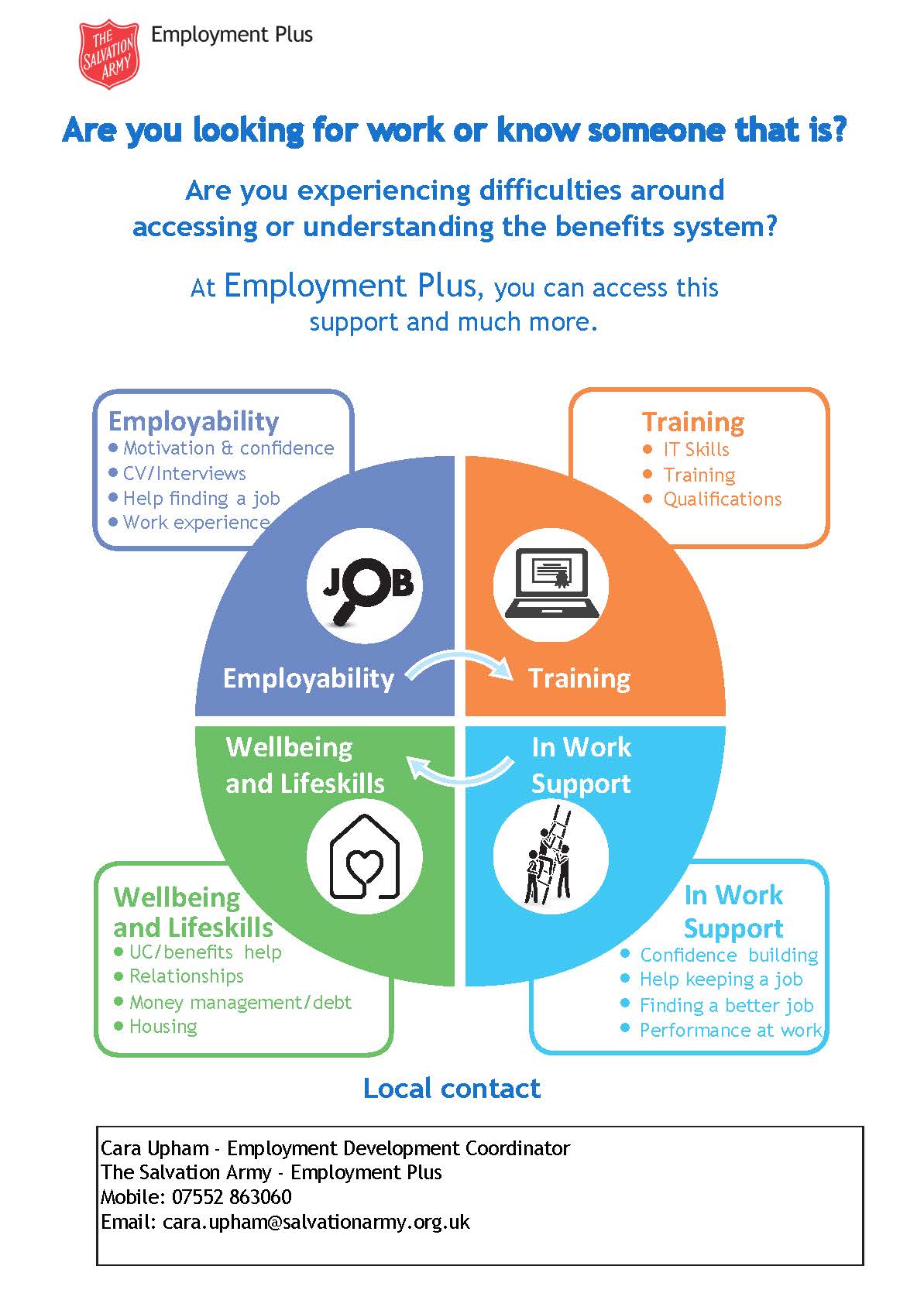 We are currently in the setting up stages for Employment Plus in Cornwall, based at The Salvation Armyโ€™s in Redruth, Penzance, Hayle, Falmouth, Newquay, St Austell, and Liskeard.