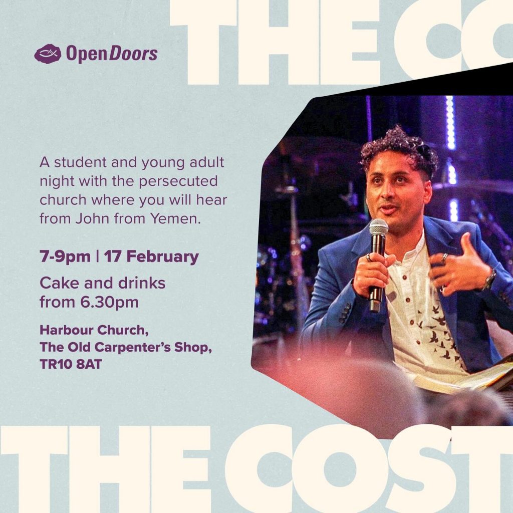 All welcome to join us for an evening with Open Doors on the 17th of February. There will be cake from 6.30pm followed by a powerful evening of testimony and worship – we canโt wait to see you!