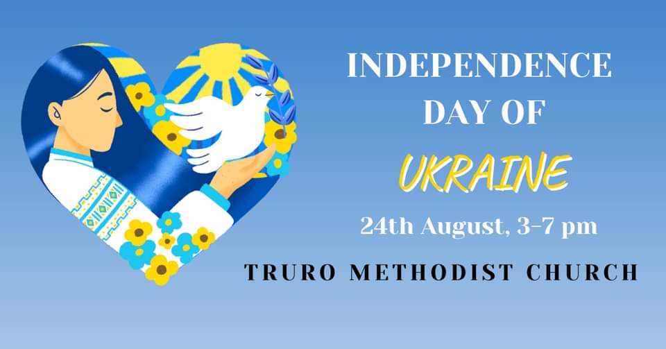 Join us in celebrating the Independence Day of Ukraine on Thursday, August 24th, from 3:00 pm to 7:00 pm at the Truro Methodist Church (back yard) located at 18 Union Pl, Truro TR1 1EP.