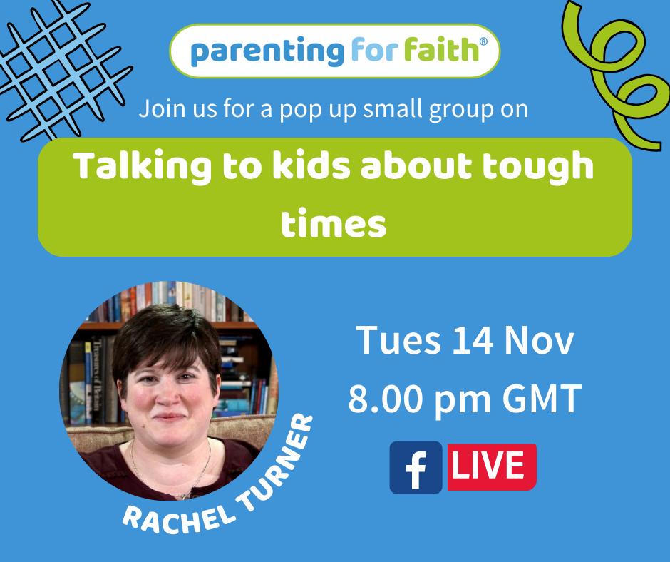 Join us and Rachel Turner for our next pop-up small group: Talking to kids about tough times.
