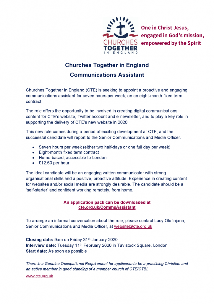 Vacancy: Communications Assistant, CTE : Closing Date 31 Jan